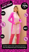 O jALECO é bi composto, isso significa que tem dois tecidos na sua fabricação. Na parte frontal e das costas ele é composto por Gabardine satin premium com elastano. Nos braços e lateral utilizamos uma malha tecnológica de poliamida, usado em roupas para atletas para maior mobilidade e conforto. Além disso, quando em contato direto com a pele, ele ativa a circulação sanguínea e mantém a temperatura corporal, ficando sempre fresquinho!