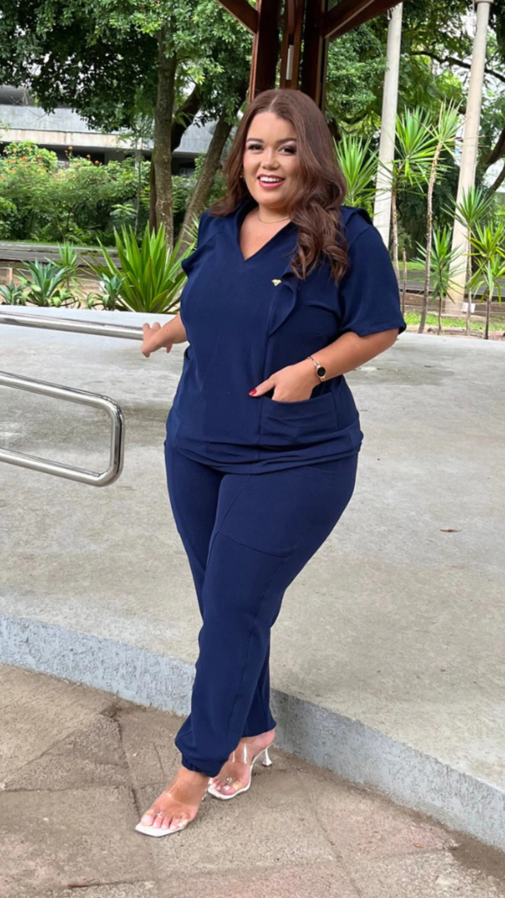 O scrub Lara é confeccionado em malha gorgurinho com textura levemente canelada e muita elasticidade. A blusa possui dois bolsos frontais, gola v, detalhe de abertura nas costas (para não amarrar no quadril) e detalhe frontal da frente até as costas, que tornam o scrub Lara simplesmente, PERFEITO! A calça do conjunto é jogger, com recorte e 2 bolsos frontais, além da cintura meio elástica.